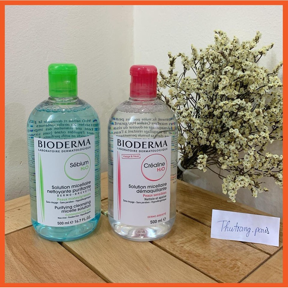 Nước Tẩy Trang Bioderma H2O 500ml Créaline Hồng, Sébium Xanh [BẢN NỘI ĐỊA PHÁP]