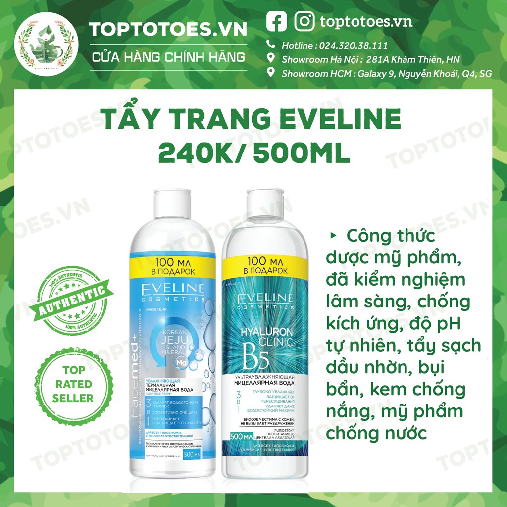 Freeship- Nước tẩy trang Eveline Korean Jeju Island và Hyaluron Clinic B5 Puridetox tẩy sạch nhẹ dịu mua tại đây