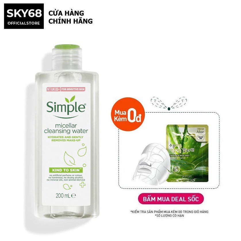 [Mẫu mới] Nước Tẩy Trang Simple Dịu Nhẹ Kind To Skin Micellar Water 200ml free ship