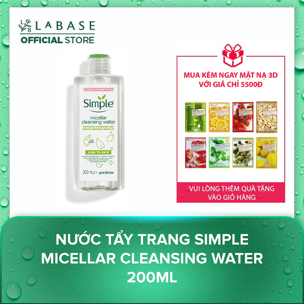 [Hàng nhập khẩu chính hãng] Nước tẩy trang Simple Micellar Cleansing Water 200ml free ship