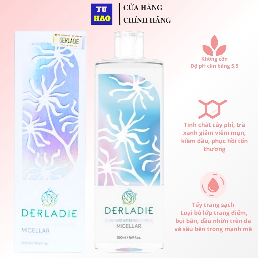 Freeship- [Mã FMCGMALL giảm 8% đơn từ 250K] Nước Tẩy Trang Làm Sạch Da, Kháng Khuẩn Derladie Cleansing Water 500ml - Từ Hảo mua tại đây