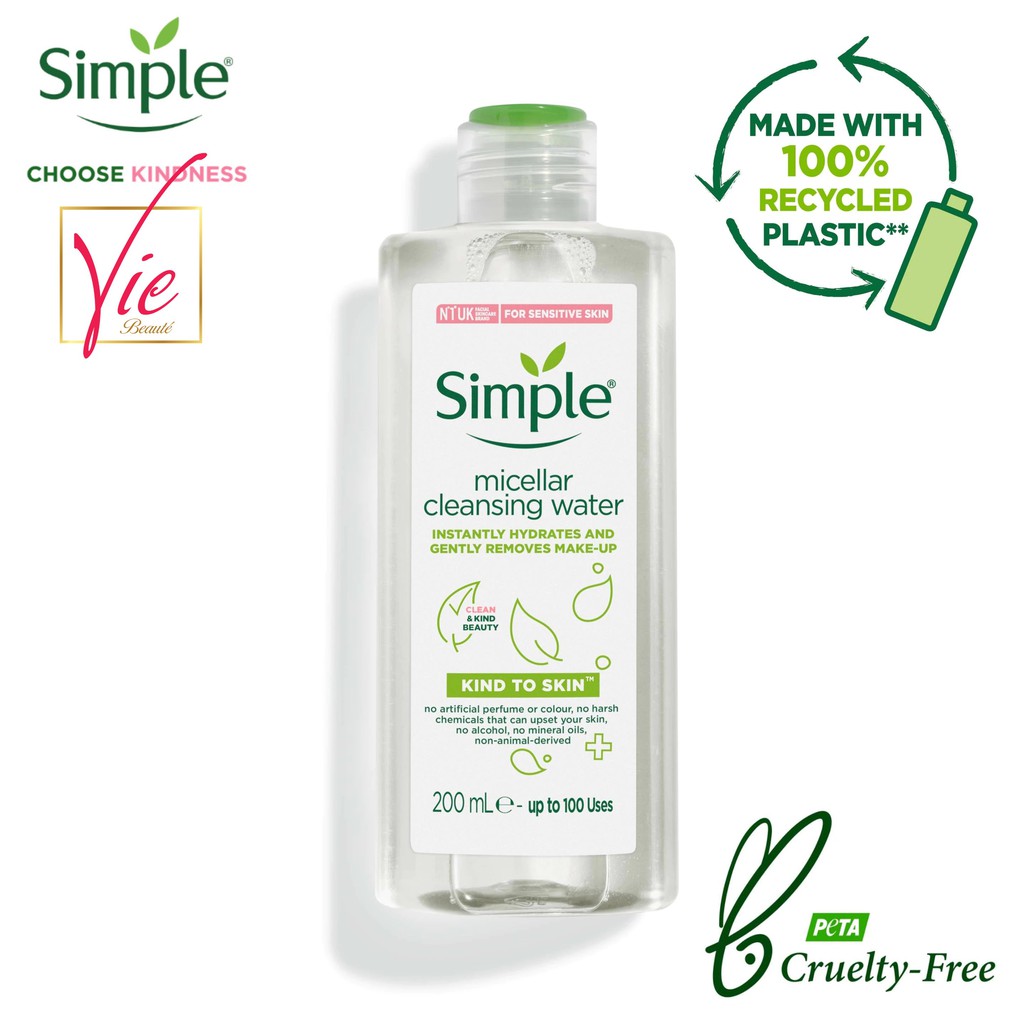 Nước tẩy trang Simple Kind To Kind Micellar Cleansing Water cho da nhạy cảm - Tẩy trang Simple 200ml free ship